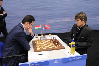 Carlsen, M won by 1.5 pts. with a final score of 10/13. Leko finished with 7.5/13.
