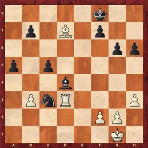 Black is pushing with two pawns for the exchange in a sharp unbalanced endgame
